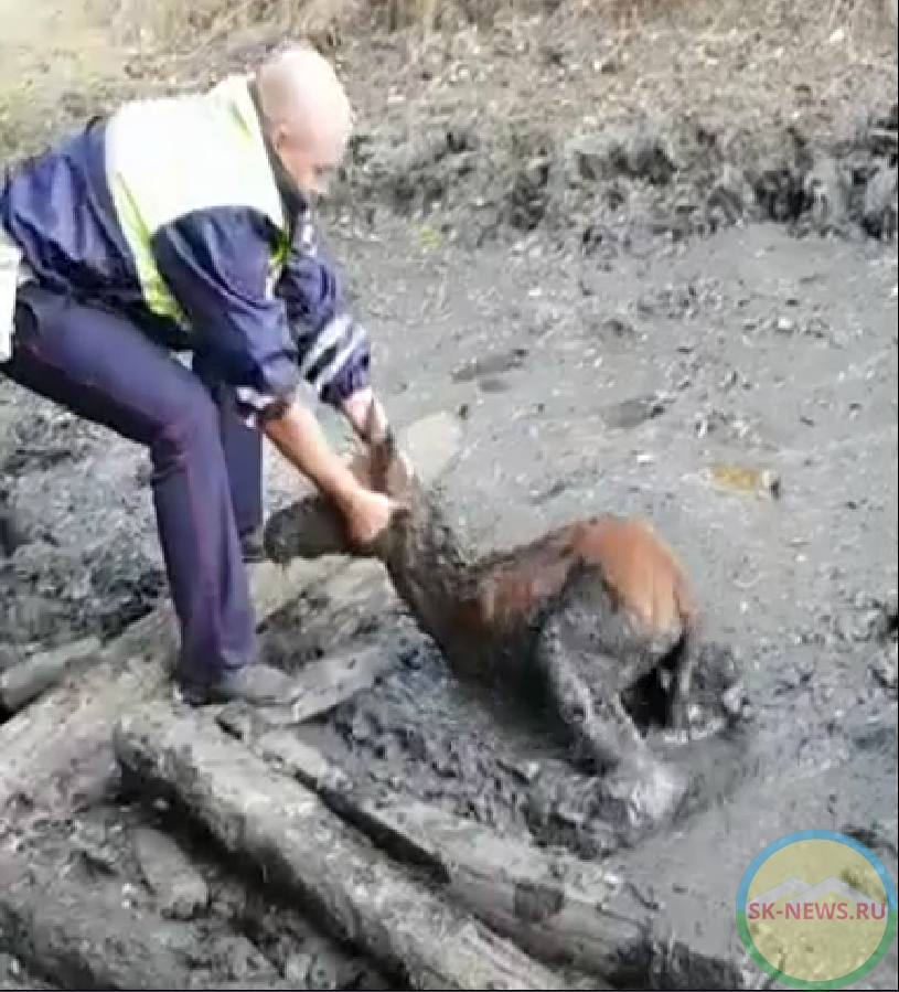 Наряд ДПС приехал оформлять дорожно-транспортное происшествие вблизи поселка Дёмино, когда увидел, что неподалеку в грязи увязли лошадь и ее жеребенок. Автоинспекторы вместе с хозяином животных сначала вытащили из грязи лошадь, затем принялись спасать жеребенка. Хозяин животных пояснил, что малыш появился на свет только что, и табун направлялся домой именно по этой причине. Однако мать с детенышем чуть отстали от тропы и увязли в грязи.