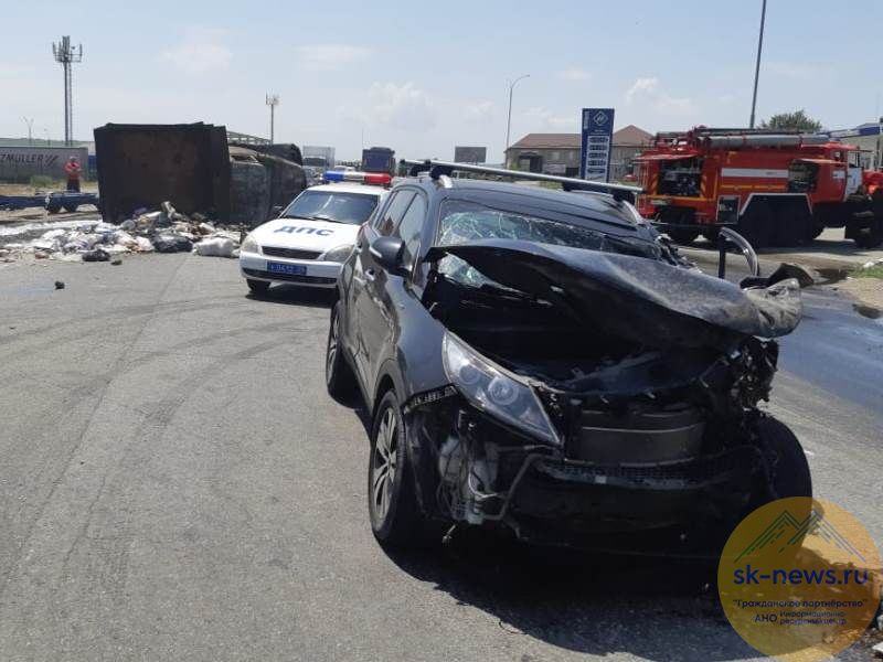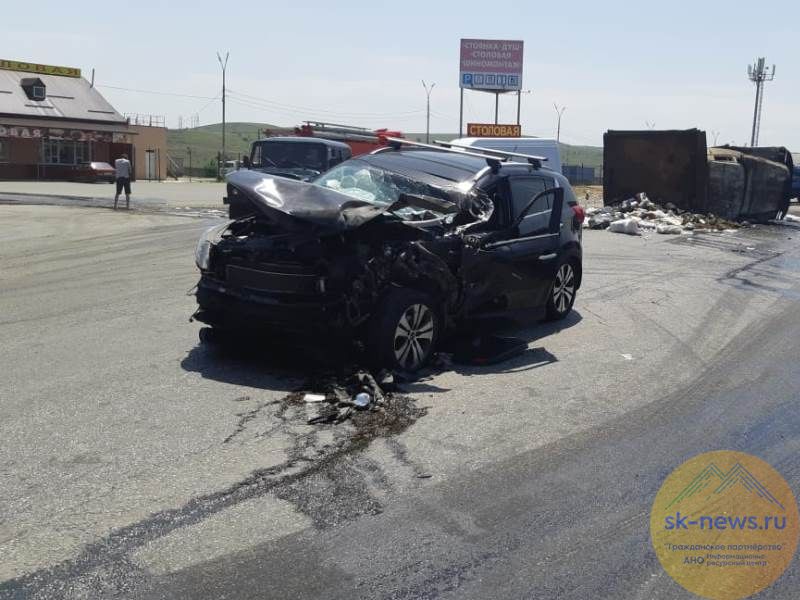 Водитель внедорожника КИА не справился с управлением и выехал на полосу встречного движения. Там он столкнулся со встречным автомобилем ЗИЛ, перевозившим твердые бытовые отходы. От столкновения самосвал опрокинулся и загорелся, по предварительной версии, из-за пробития топливного бака. Управлявший грузовиком сам выбрался из горящего большегруза, а 38-летний водитель внедорожника получил травмы и госпитализирован в больницу Ставрополя.