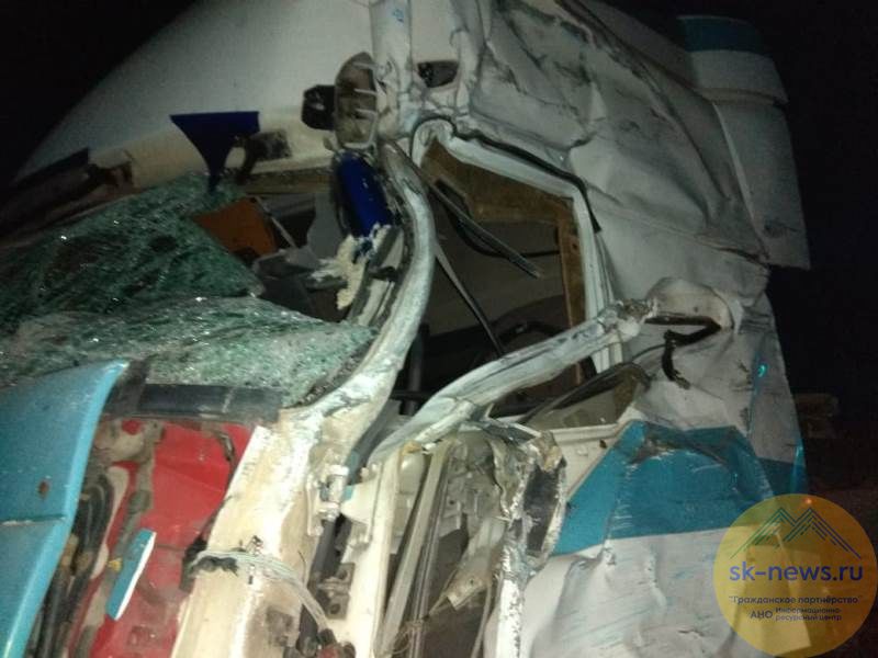 В Апанасенковском районе края в половине третьего ночи 2 августа на автодороге «Астрахань – Элиста – Ставрополь» столкнулись рейсовый автобус «Сан Лонг» с 21 пассажиром и двумя сменщиками за рулем и грузовик «Рено» с номерами Брянской области.