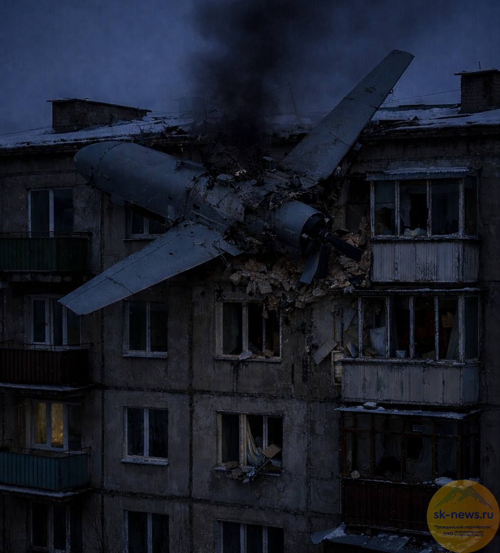 Под утро в Беслане обломки сбитого беспилотника рухнули на пятиэтажный жилой дом. Семьдесят человек пришлось срочно выводить из здания, один житель получил порезы и обратился за медицинской помощью.
