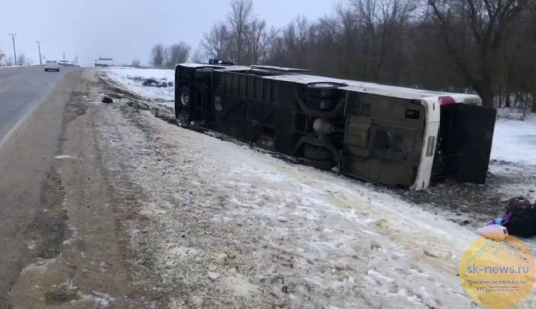 Ранним утром 2 февраля в Ипатовском округе Ставропольского края опрокинулся междугородний автобус, следовавший по маршруту Севастополь — Астрахан. В результате происшествия медицинская помощь понадобилась четырём людям, их доставили в больницу.