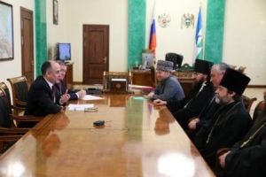 Сегодня врио Главы КБР Юрий Коков провел встречу с руководителями религиозных конфессий республики. В ней принял участие архиепископ Пятигорской и Черкесской епархии Феофилакт.