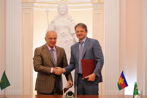 Делегация Адыгеи во главе с Асланом Тхакушиновым сегодня побывала с рабочим визитом в Краснодаре. В администрации Краснодарского края глава Адыгеи и губернатор Краснодарского края подписали соглашение в рамках бессрочного договора "О дружбе и сотрудничестве", который действует с 2007 года. Подписание сегодняшнего соглашения подтверждает намерения обеих сторон продолжить дальнейшее плодотворное сотрудничество, отметил Александр Ткачев: "Все эти годы мы работали рука об руку, реализовали немалое количество совместных проектов. Но самое главное – сделано всё возможное для того, чтобы люди по обоим берегам Кубани жили одной большой дружной семьёй в мире и согласии. На территории края проживает много адыгов, мы чтим вашу культуру, традиции. Кубань – территория многонациональная, равных возможностей для всех народов. Мы прошли долгий путь, сложились теплые отношения, проверенные временем. И сегодня нас гораздо больше объединяет, чем разъединяет". Губернатор Краснодарского края также подчеркнул, что за семь лет с момента подписания договора о сотрудничестве произошел серьёзный сдвиг во взаимоотношениях двух субъектов: "У любого процесса есть первое лицо. Сегодня мы как никогда дружны, понимаем и слышим друг друга. Хочется протянуть руку помощи, поддержать словом, делом. Тон таким отношениям задают первые руководители. Надеюсь, что дружба сохранится. Мы подаём пример другим субъектам, не приходится тратить время и силы на урегулирование различных спорных вопросов". Аслан Тхакушинов, поблагодарил губернатора Кубани за теплый прием и постоянную поддержку: "За 7 лет многое поменялось в лучшую сторону, но неизменно то, что мы всегда поддерживали и будем поддерживать друг друга. Со временем у нас появились новые точки соприкосновения, новые направления работы, усилия по которым нужно синхронизировать. Я уверен, что подписанный сегодня документ придаст новый импульс нашему сотрудничеству. Нас разделяют только территориальные границы, но мы живем в одном экономическом пространстве, у нас тесные связи в самых разных сферах жизни. И мы прилагаем максимальные усилия для того, чтобы укреплять нашу дружбу. В этом большую роль играет и авторитет Александра Ткачёва, человека которого очень уважают в Адыгее". Подписанный между двумя субъектами документ охватывает целый ряд направлений. Это строительство Яблоновского моста, объездных дорог и магистралей, ведущих к курортам Кубани и будущему горно-лыжному курорту "Лагонаки" в Адыгее. Кроме того, сегодня были подписаны соглашения о развитии торгово-экономических отношений, отношений в сфере здравоохранения, образования, культуры и сельского хозяйства. В завершении встречи губернатор вручил Аслану Тхакушинову высшую награду Краснодарского края – медаль "Герой труда Кубани" за вклад в укрепление межнациональных и дружественных связей между народами. Отметим, что сегодня, 23 июля, исполнилось 12 лет со дня учреждения высшей награды Кубани, которая вручается за особый вклад в развитие региона. За это время ее были удостоены 130 человек. После официальной церемонии в рабочем кабинете губернатора Аслан Тхакушинов и Александр Ткачёв более детально обсудили вопросы дальнейшего сотрудничества, сообщили SK-NEWS.RU в пресс-службе главы РА.