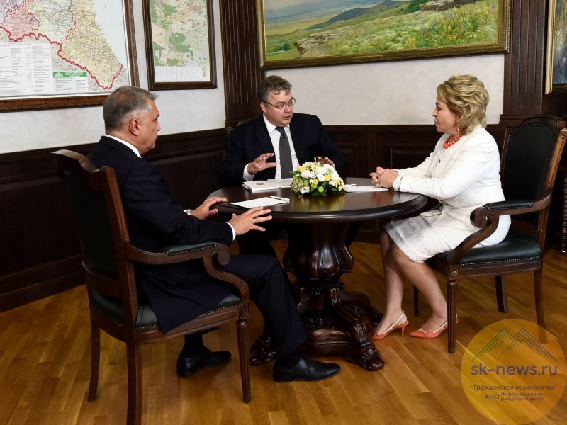 Председатель Совета Федерации Федерального Собрания РФ 8 июля прибыла с рабочей поездкой в Ставропольский край. В аэропорту спикера Совета Федерации встретили полномочный представитель Президента РФ в СКФО Александр Матовников, губернатор края Владимир Владимиров.