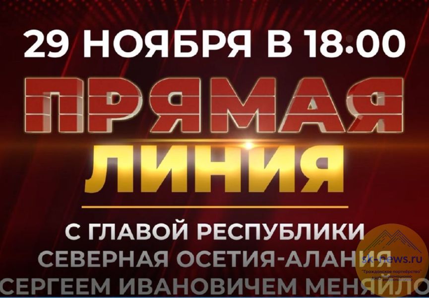 Прямую линию можно будет увидеть в эфире национальной телекомпании «Осетия-Ирыстон», в аккаунтах главы РСО-Алания в Telegram и ВКонтакте, на YouTube и Rutube-каналах и в Telegram-аккаунте НТК «Осетия-Ирыстон», официальном сайте главы и правительства Северной Осетии alania.gov.ru, на сайте ГТРК «Алания» alaniatv.ru. Слушайте ответы на вопросы граждан в эфире радио «FM Алания», сообщили SK-NEWS.RU в пресс-службе главы и правительства республики.