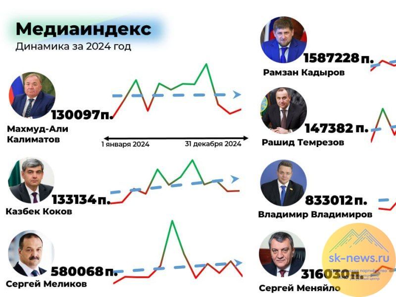 Эксперты изучали динамику медиаиндекса глав регионов Северного Кавказа с 1 января по 31 декабря 2024 года. Самыми востребованными темами в повестке глав регионов СКФО были специальная военная операция на Украине и развитие гражданской инфраструктуры.