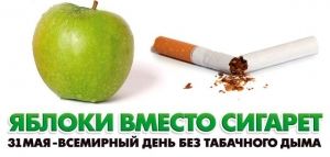 31 мая, во Всемирный день отказа от курения, накануне вступления в силу антитабачного закона, Министерство здравоохранения и курортов Кабардино-Балкарской Республики проведет масштабную акцию «Яблоко вместо сигареты».