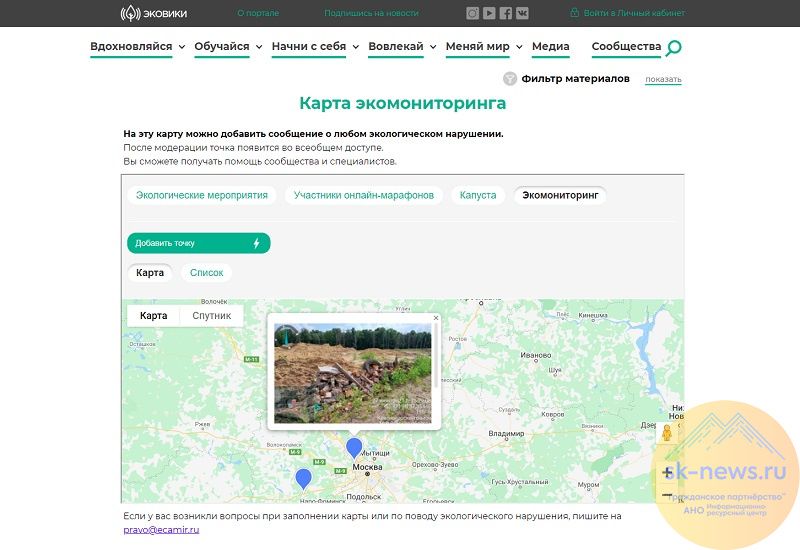 Если контактная информация будет добавлена в описание точки, то связаться с активистами и оказать помощь сможет любой участник сообщества Ecowiki.ru.