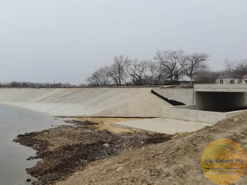 Монолитным железобетоном на объекте сформировали и укрепили мокрый откос, обустроили паводковый водосброс, также заасфальтировали часть дороги по гребню плотины и сделали пешеходную дорожку.