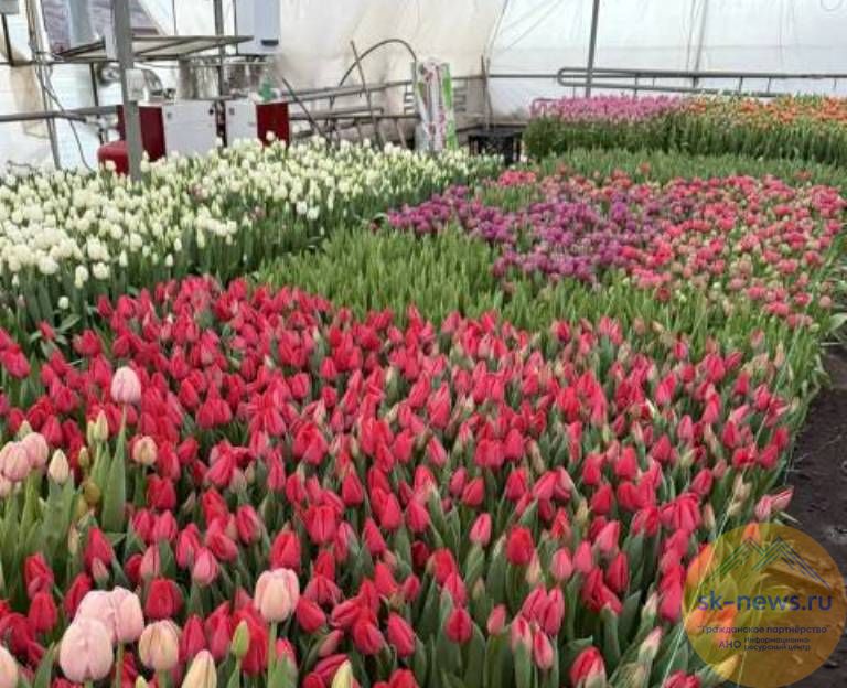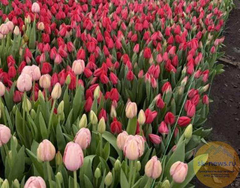 В этом году производители расширили ассортимент тюльпанов до 20 сортов. Ставку сделали на проверенную временем классику и на экзотику: 40% составляют жёлтые тюльпаны, 30% – красно-оранжевая гамма. Оставшуюся часть делят розовые, белые и пионовидные сорта. Среди новинок сезона – махровые сорта в сиреневой гамме и декоративные розы в горшках. Глава Предгорного округа Николай Бондаренко рассказал