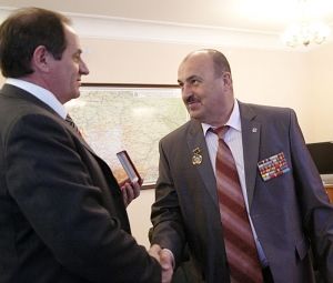 Председатель организации «Союз Чернобыль» Михаил Хлынов передал губернатору края памятный знак, выпущенный в связи с 25-летием катастрофы на Чернобыльской АЭС.