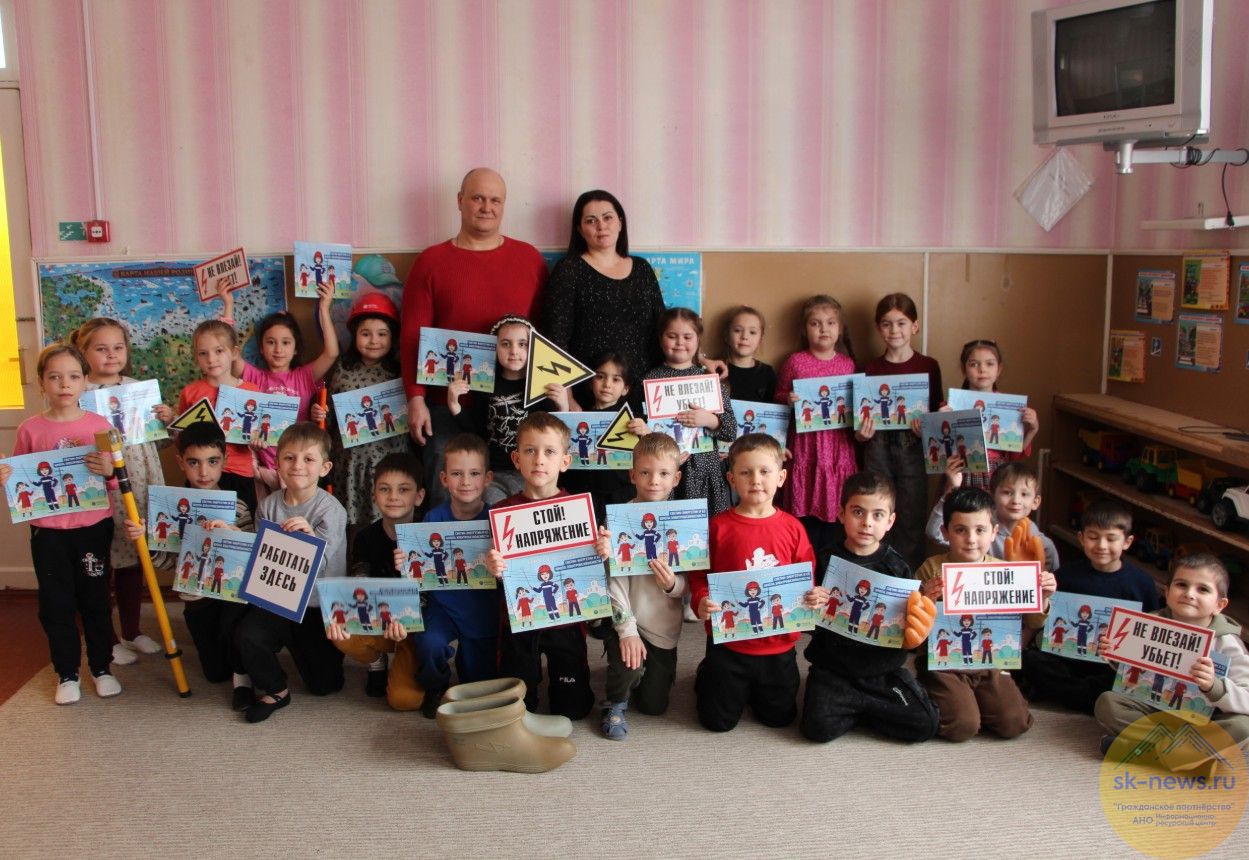 Занятие для воспитанников детского сада №2 провели сотрудники Прохладненских районных электрических сетей. Инженер по охране труда Марьяна Пак и мастер Николай Ольховский рассказали детям, что электричество не терпит игр и ошибок — ни дома, ни на улице. Чтобы малыши не заскучали, теорию разбавили мультфильмами и яркими памятками.