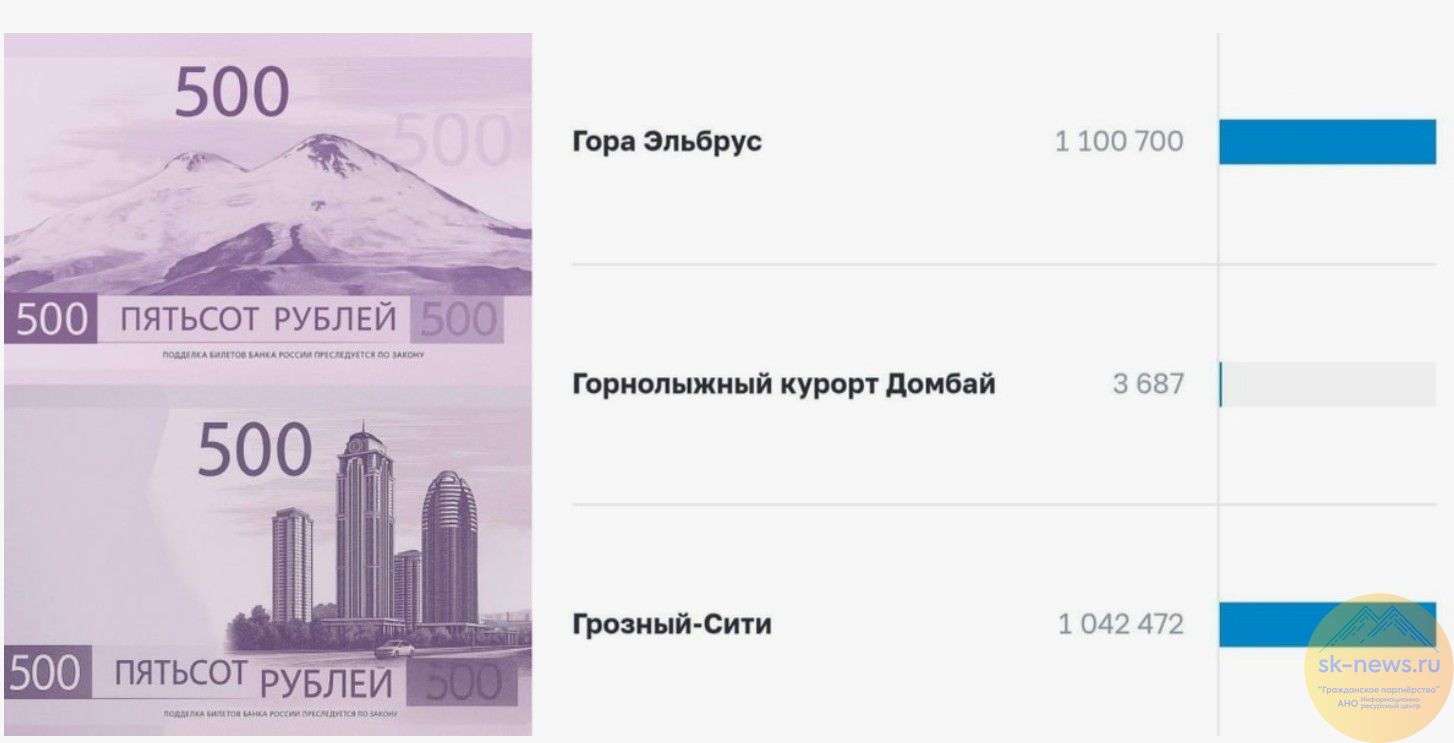 Основная интрига развернулась вокруг оборотной стороны банкноты, где главными претендентами стали гора Эльбрус и комплекс небоскребов «Грозный-Сити». К 12 октября за Эльбрус было отдано около 1,26 млн голосов, в то время как «Грозный-Сити» набрал примерно 1,07 млн.