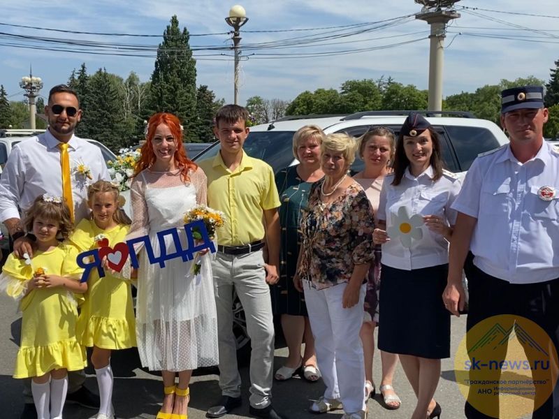 В столице края в День семьи, любви и верности Госавтоинспекция организовала для молодоженов традиционную акцию. Руководитель Совета отцов города Иван Соловьёв вместе с сыном пришел к ЗАГСу, где сегодня десятки пар торжественно сочетались узами брака.