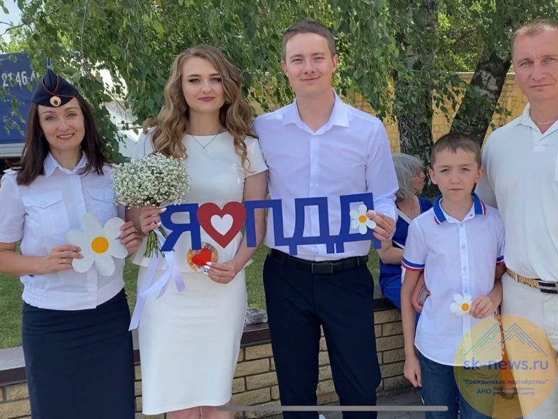 Сотрудники ГИБДД предложили новоиспеченным семьям сфотографироваться с тематической табличкой «Я люблю ПДД». Это посыл их друзьям и знакомым быть примерными участниками дорожного движения. В краевом центре она проводится с 2018 года.