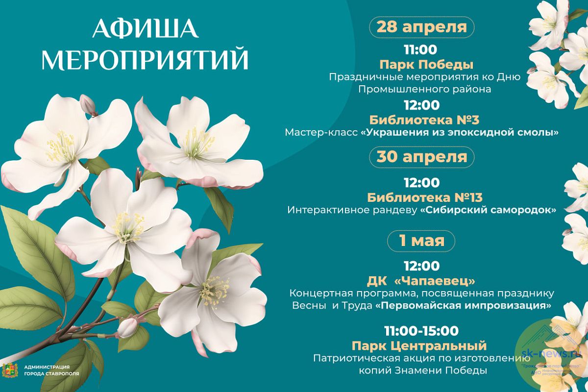 28 апреля на территории парка пройдет торжественный концерт, спортивный фестиваль, а также выступления детских и профессиональных вокальных коллективов. Горожан порадуют «Казачий пикет», «45 параллель», АртСтавШоу «Ставрополье» и другие. Начало в 11.00.
