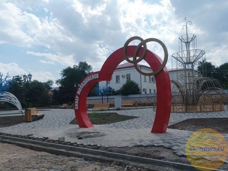 На объекте установлена входная арка в виде сердца с обручальными кольцами. Есть скамья примирения, арт-объекты «Руки-сердце», «Кольца», световая композиция «Царский фонтан» и светодиодные деревья «Сакура». До конца лета в сквере установят уличное освещение и высадят декоративные растения, «зеленые зоны» снабдят автополивом.