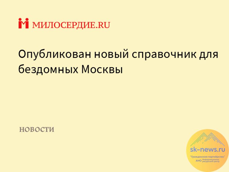 Справочник подготовила автономная некоммерческая организация «Теплый прием» (г. Химки) при содействии Синодального отдела по благотворительности. В справочнике собрана контактная информация государственных, общественных и религиозных организаций Москвы, помогающих бездомным людям.