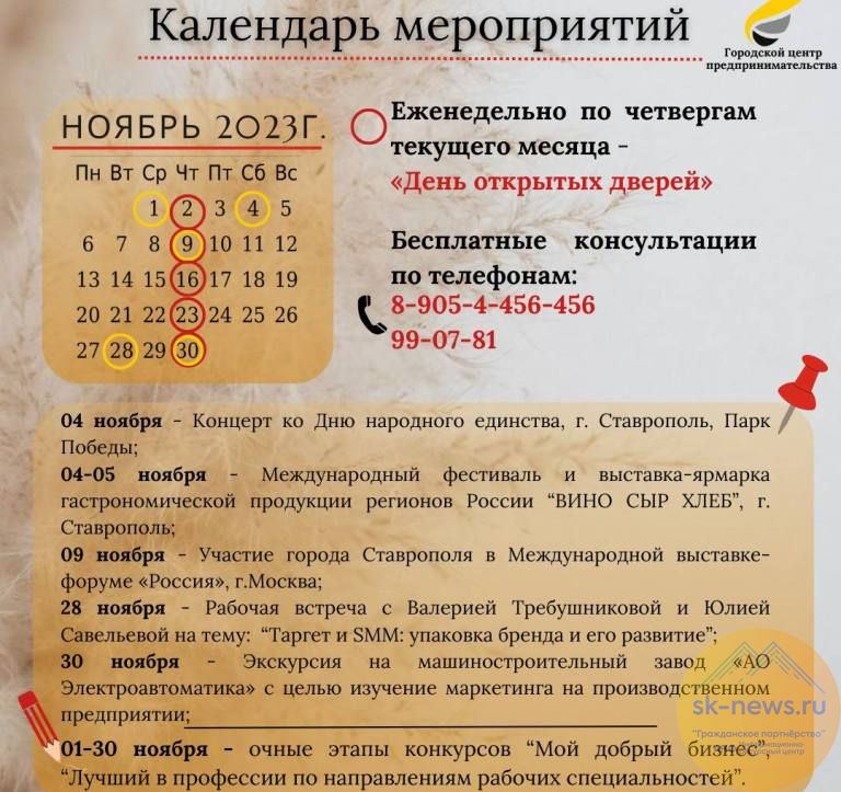 9 ноября – в рамках недели туризма Ставрополь представит свой туристический потенциал на международной выставке-форуме «Россия», стартующей 4 ноября на ВДНХ в Москве. Участниками до 12 апреля 2024 года станут все 89 регионов страны.