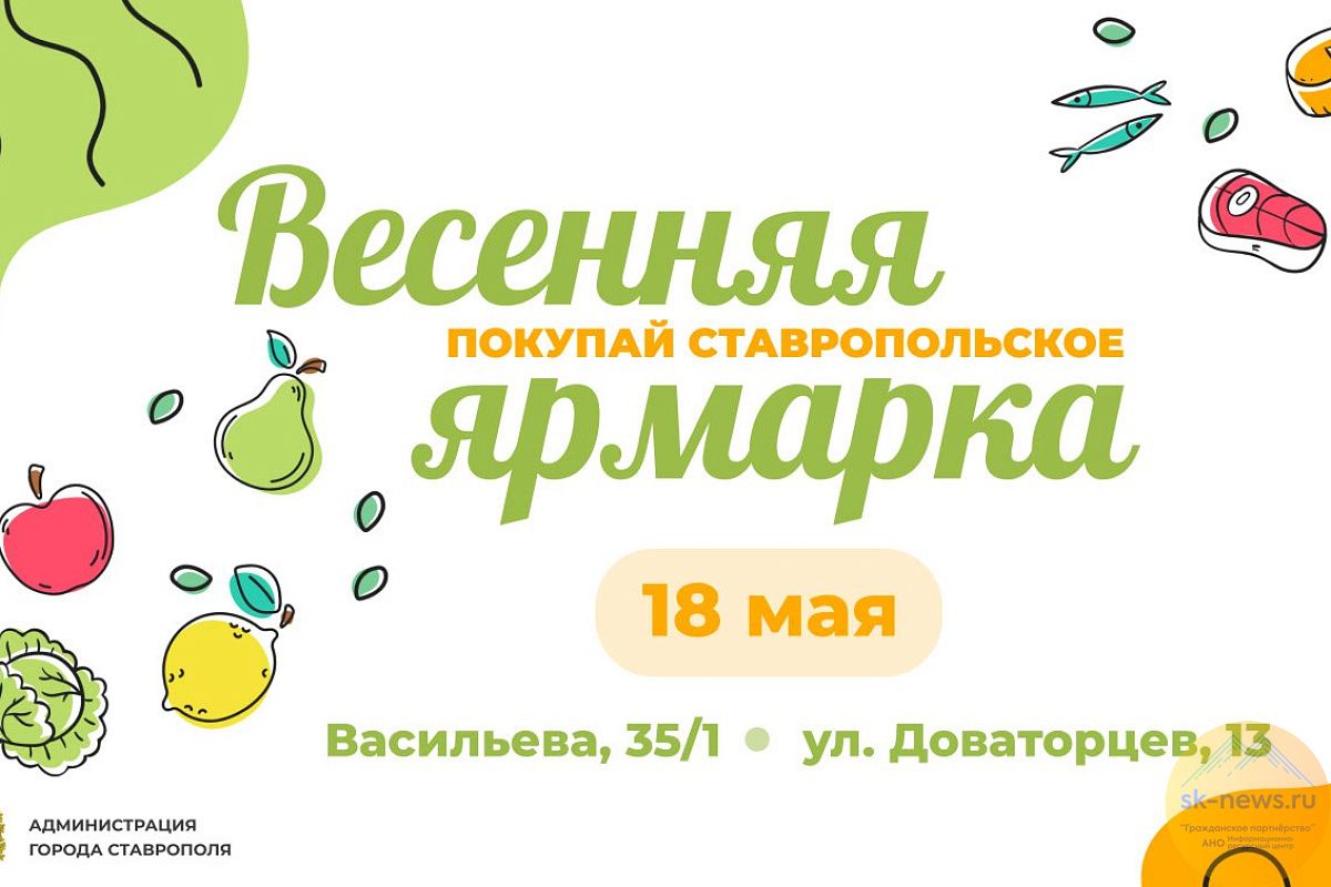 Жителей и гостей Ставрополя приглашают на ярмарки «Покупай ставропольское!», которые пройдут 18 мая на улице Васильева, 35/1 и Доваторцев, 13.