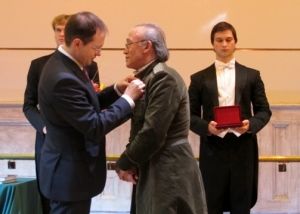 Звание «Заслуженный художник Российской Федерации» и серебряный нагрудный знак Кишеву вручил министр культуры России Владимир Мединский.