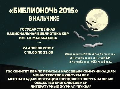Хэштеги: #Библионочь2015 #ГодЛитературы #ЧитайНальчик #ЧитайКБР #ЧитайКавказ #ЖурналБуква