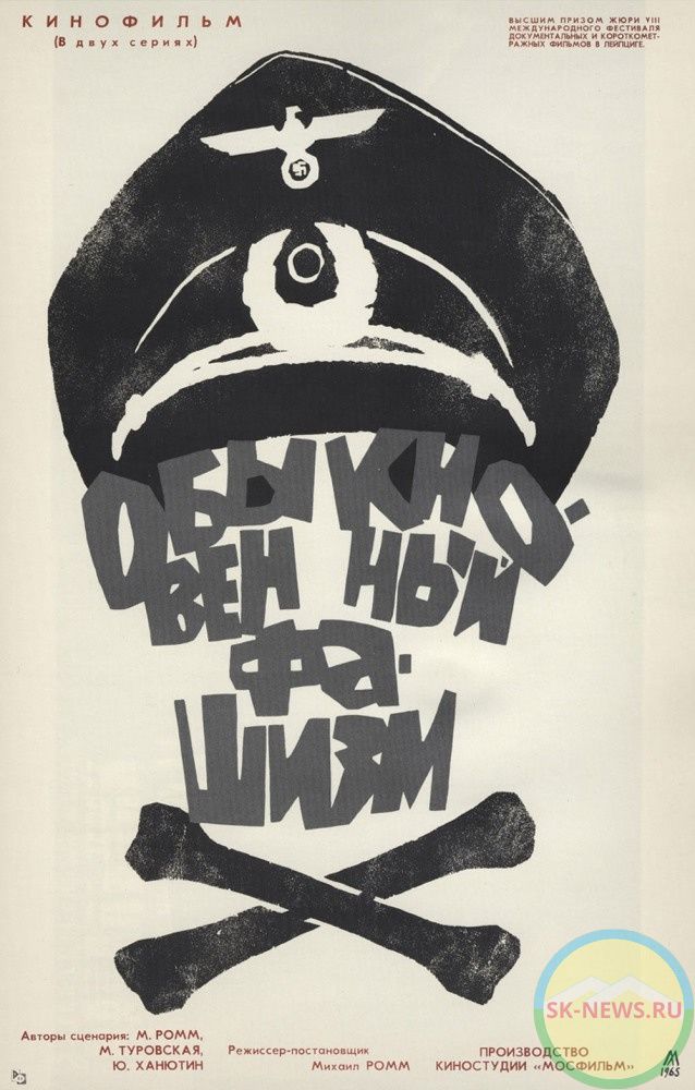 Документальный фильм Михаила Ромма «Обыкновенный фашизм», в котором режиссер выступил в роли рассказчика, был выпущен на экраны в 1965 году и получил награду «Золотой голубь», а также приз на VIII Международном кинофестивале документальных фильмов в Лейпциге. Фильм представляет собой своеобразное исследование, по сути, это попытка разобраться в истоках такого явления, как фашизм. И по сей день картина является самой мощной антивоенной и антифашистской отечественной лентой. Это размышление о природе и становлении фашизма, о причинах, по которым он мог родиться в Германии, давшей миру таких деятелей культуры, как Гете и Манн. Каким образом к власти здесь смогли прийти одиозные и малограмотные люди, сметающие все на своем вероломном пути? В фильме использованы материалы из немецких архивов, кадры, отснятые личным фотографом Гитлера, съемки из концлагерей, где находились тысячи людей, замученных и уничтоженных нацистами. Фильм выходил в прокат разделенным на две серии, сообщает ivi.ru.