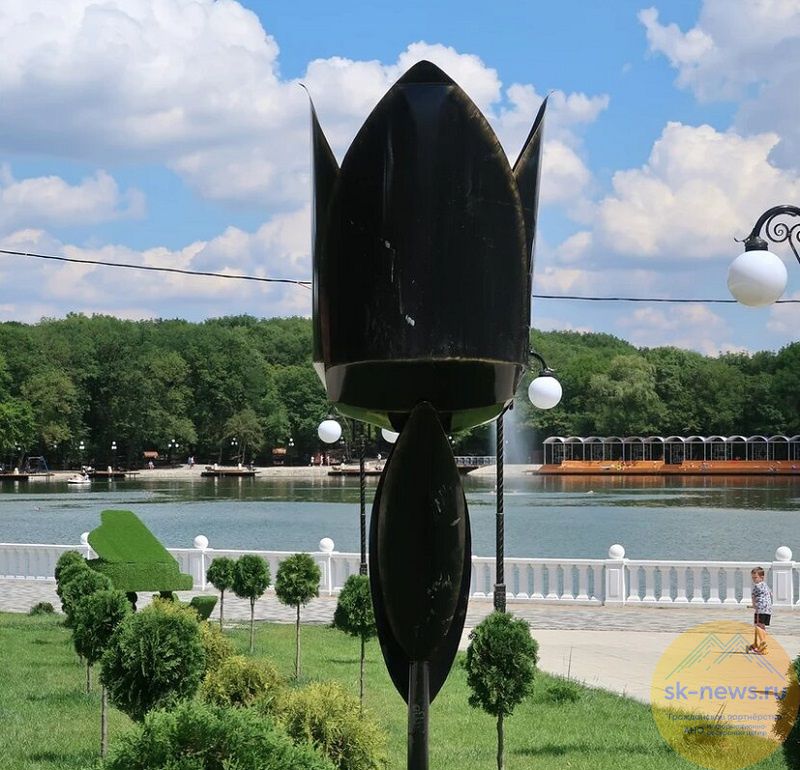 Высота железного цветка достигает почти трёх метров. Внутри бутона находится световая установка, луч которой светит вверх на несколько сотен метров, рассказали SK-NEWS.RU в городской администрации.