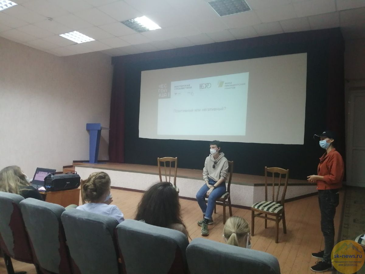 В дистанционной встрече участвовали продюсер программы "Не столица" Наталья Павленко, координатор проекта в Ставропольском крае Анастасия Победнова, художник и дизайнер Елена Горская, директор Молодежного центра Валентин Артамонов, и тренер-куратор "Не столицы" в Благодарном и специалист Молодежного центра Светлана Артамонова.