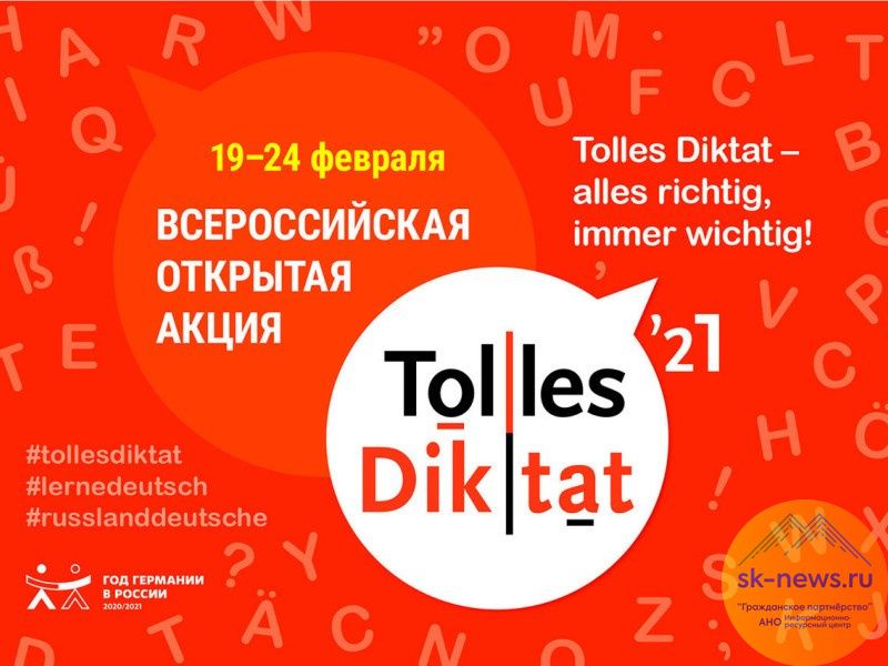 Акция проводится до 24 февраля с целью популяризации немецкого языка и развития культуры грамотного письма. Все желающие могут написать диктант из любой точки мира, присоединившись к онлайн-трансляции 19 февраля в 13 часов на официальном сайте https://tollesdiktat.rusdeutsch.ru/. Для этого необходимо пройти регистрацию до 17 февраля 2021 г. В личном кабинете можно открыть ссылку на онлайн-трансляцию, написать диктант в текстовом редакторе (длительность составляет около 40 минут) и сохранить его. После участнику станет доступен оригинал текста, чтобы самому проверить свою работу и увидеть ошибки. Каждый участник получит именной сертификат, рассказали SK-NEWS.RU в пресс-службе комитета Ставропольского края по делам национальностей и казачества.