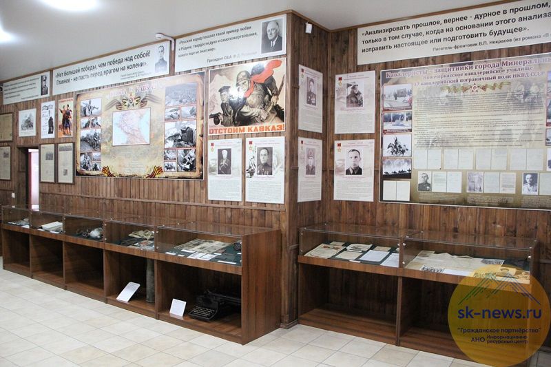 В центре экспозиции - Битва за Кавказ, подвиги курсантов Новочеркасского кавалерийского училища, 17-го кавалерийского пограничного полка НКВД СССР, биографии казаков-героев Великой Отечественной войны, ветеранов-казаков города Минводы.