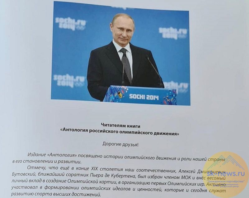 Двухтомник «Антология Российского олимпийского движения» был передан в книжный фонд модельной библиотеки Железноводска департаментом по обеспечению деятельности библиотеки администрации Президента РФ Владимира Путина.
