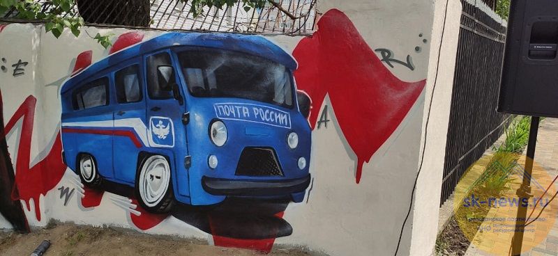 Ее роль взял на себя забор автобазы Почты России на ул. Доваторцев, 24. Организация поддержала проект, капитально отремонтировала стену и подготовила для работы ставропольских художников.