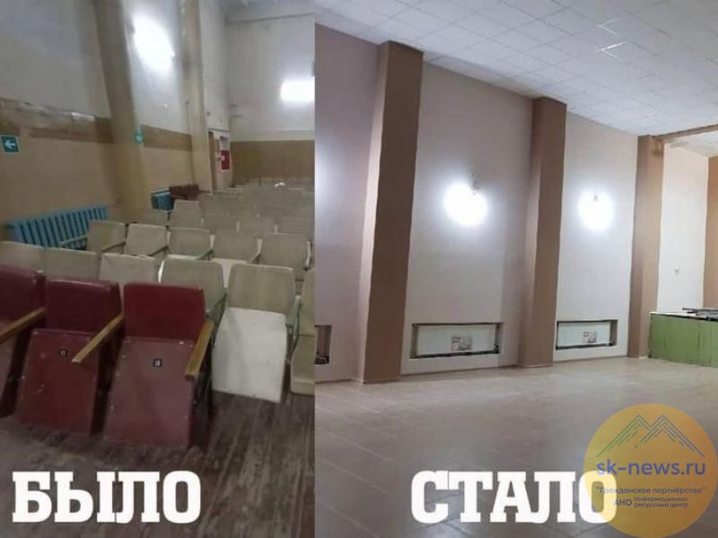 Четвертый реализованный в Георгиевском округе в рамках программы проект – благоустройство площадки перед ДК в поселке Новоульяновском. Там заменили кровлю, систему отопления, сцену, отремонтировали зрительный зал на 250 мест. Вторую жизнь получили гримерная, классы для занятий вокалом и хореографией, холлы и рекреации. ДК оснастили новым оборудованием, театральными креслами. Появилась благоустроенная зона отдыха. На реализацию проекта направлено 2 млн рублей.