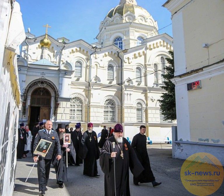 На фото Ставропольской и Невинномысской епархии – участие в Бессмертном полку митрополита Кирилла 9 мая 2022 года.