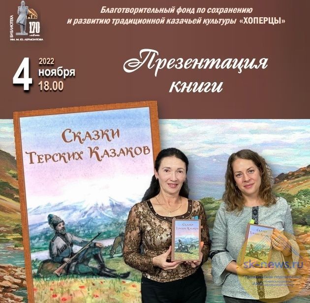 Руководитель проекта, составитель сборника Ирина Щербакова рассказала в краевой библиотеке имени М. Ю. Лермонтова о книге, собирателях сказок до революции. Благодаря им до потомков дошли произведения народного творчества казаков Терской области.