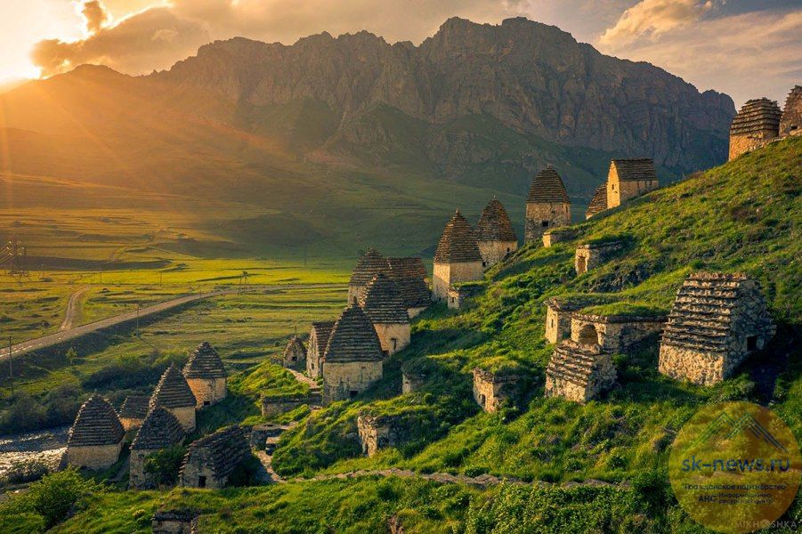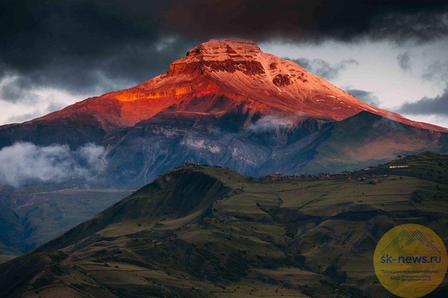 Под текстом – фотографии Мухаммада Шапиева «Горит гора» и Михаила Гассиева «Даргавс. Наследие аланов».