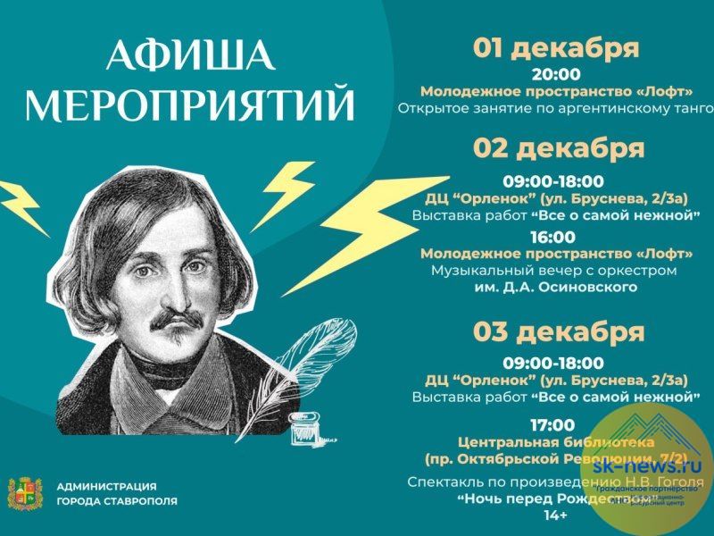 Муниципальный театр-гостиная «Гармония» в Центральной библиотеке Ставрополя на проспекте Октябрьской Революции, 7/2, даст спектакль по произведению Николая Гоголя «Ночь перед Рождеством». Знакомые с детства персонажи увлекут в круговорот невероятных перипетий и событий, произошедших накануне Рождества на заметенном пургой хуторе без названия, где ближайший ориентир – Диканька. Достопочтимая Солоха привечает гостей, ее сын Вакула добивается любви ненаглядной красавицы Оксанки, черт, как всегда, станет озорничать, пакостить и не по своей воле помогать Вакуле. Зрителей старше 14 лет ждут 3 декабря в 17 часов. В спектакле играют артисты фольклорного ансамбля «Казачий пикет», раскрыли секрет SK-NEWS.RU в пресс-службе администрации города Ставрополя.