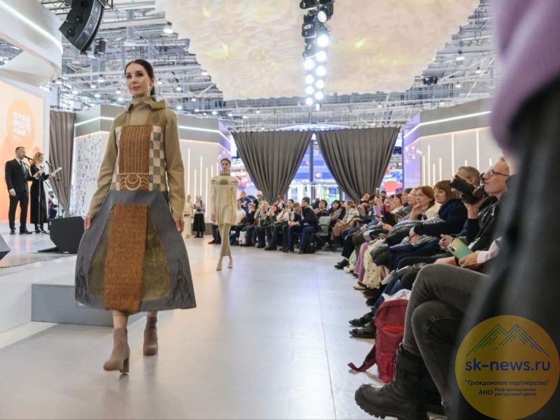 выставке-форуме «Россия» на ВДНХ. Наряды девушек по цветовой гамме и геометрической архитектуре отсылают к истории столицы края. Они выполнены в золотой, бежевой и бело-голубой цветовой гамме как фасады зданий в центре города. В одном из образов узнается достопримечательность Ставрополя – Триумфальная арка на проспекте Карла Маркса.