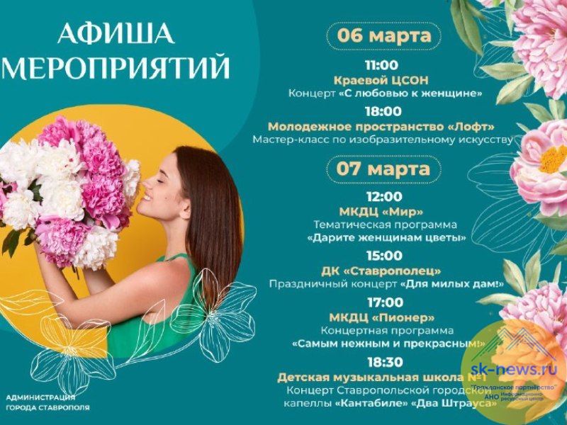 В канун Международного женского дня в четверг 7 марта в доме культуры «Ставрополец» ансамбли «Соседи», «Доминанта» и театр «Пигмалион» исполнят песни, танцы и стихи в программе «Для милых дам!». Она начнется в три часа дня.