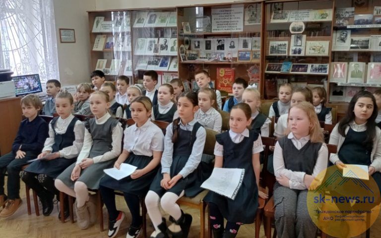 Библиотекарь представила вниманию гостей слайд-презентацию «Певец казачьего края», рассказывающую о наиболее ярких моментах богатой биографии юбиляра. Ребята внимательно посмотрели отрывки из фильма «История Ставрополья в лицах. Страницы биографии В.В. Ходарева». Действующая в библиотеке музейная экспозиция, посвященная жизни и творчеству В.В. Ходарева, вызвала у школьников неподдельный интерес и соответственно много вопросов. Они все дружно согласились с тем, что Витислав Васильевич внес большой вклад не только в литературную копилку, но и способствовал развитию и процветанию нашего родного Ставрополья и всей России, сообщает