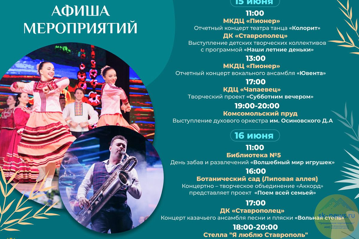 Отчетные концерты театра танца «Колорит» и вокального ансамбля «Ювента» пройдут 15 июня в культурном центре «Пионер» в 11 и 13 часов. Начинающие артисты представят лучшие номера сезона, продемонстрируют свои таланты и достижения.