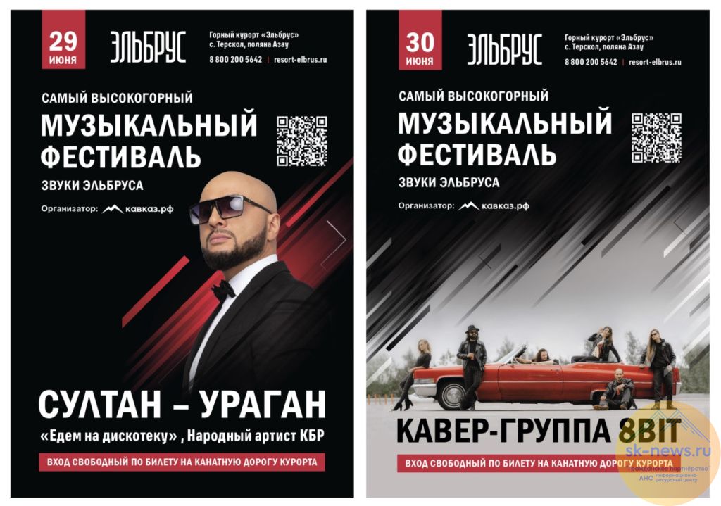 В рамках фестивальной программы запланировано 3 музыкальных дня с разными артистами. L`One выступит в день открытия 28 июня, а 29 и 30 июня соответственно ожидаются концерты Султана-Урагана и кавер-группы 8Bit. Посещение концертов бесплатно при предъявлении билета на канатную дорогу курорта «Эльбрус».