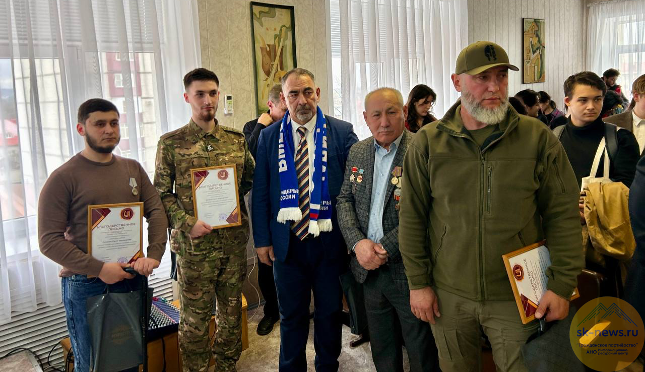 В рамках творческого вечера Исса-Али Мамчвуев, Председатель президиума организации офицеров России по КЧР им. Героя России генерал-майора Канамата Боташева, вручил медаль за содействие специальной военной операции Алакаеву Казбулату, помощнику Председателя организации ветеранов Афганистана и Специальных военных операций.