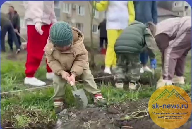 80 молодых ясеней к 80-летию Великой Победы высадили терчане в одном из густонаселённых кварталов райцентра.