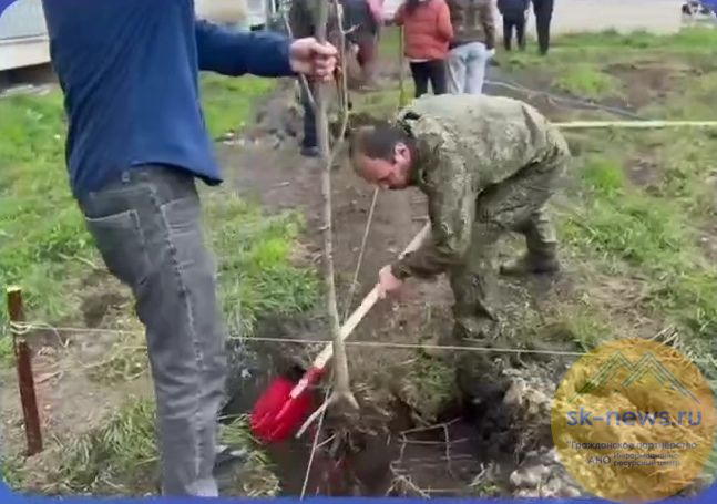В акции приняли участие родственники героев Великой Отечественной войны, ветераны СВО, волонтеры и активисты, юнармейцы. К каждому саженцу прикреплена бирка с именем героя - защитника Родины.