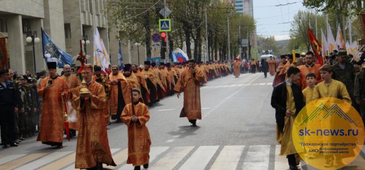 Праздничное шествие, которое стало символом радости Воскресения Христова, стартовало от храма святого апостола Андрея Первозванного, и продолжилось по городским улицам до Казанского собора. Во главе процессии шёл митрополит Ставропольский и Невинномысский Кирилл.