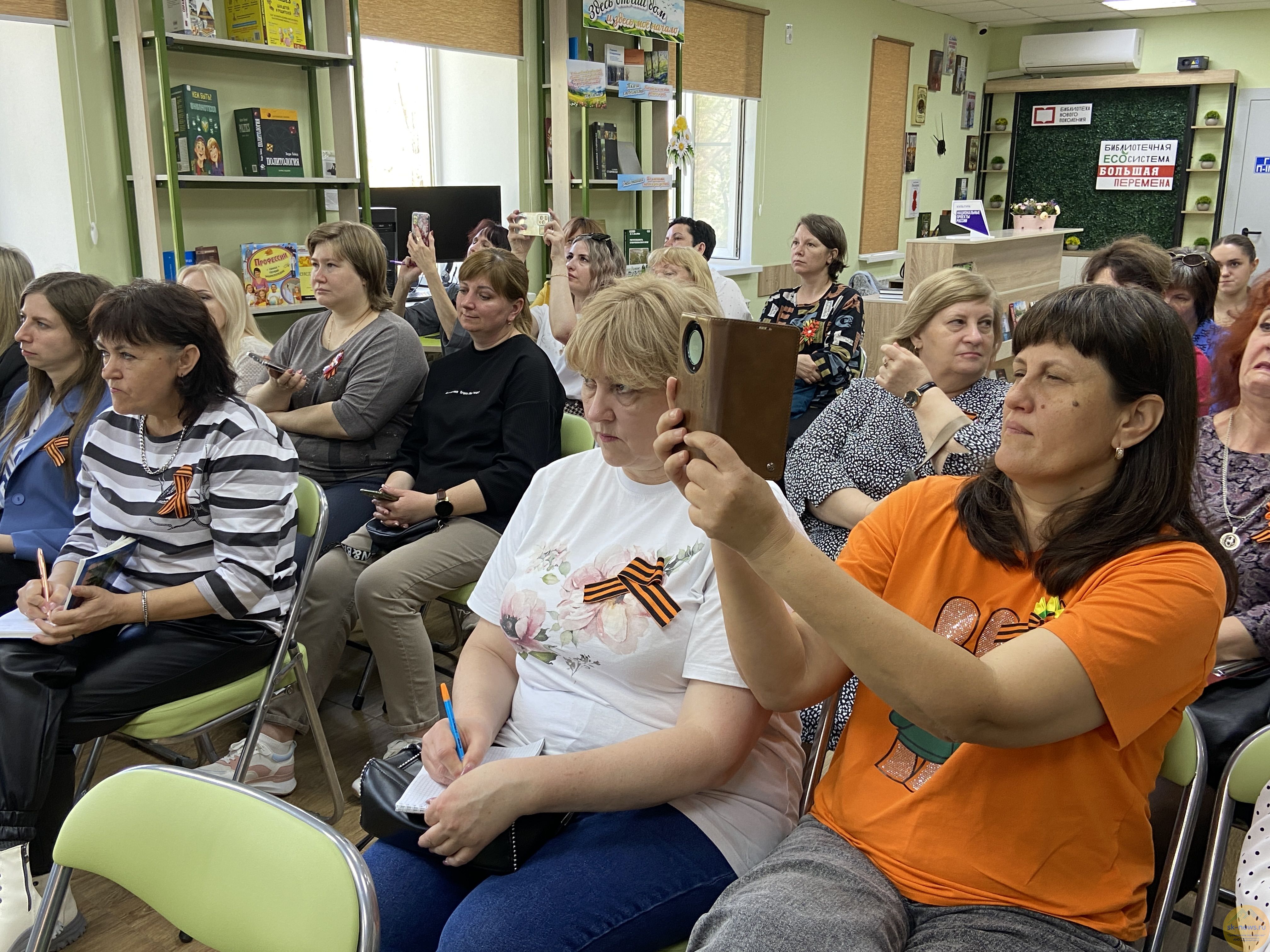 Заведующая методическим отделом Централизованной библиотечной системы Левокумского района Елена Дорофеевна Анисимова сделала обзор практик российских коллег на тему «Современные направления библиотечной работы: эволюция благодаря новым технологиям и методикам».