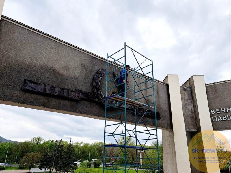 В городе Минеральные Воды провели косметический ремонт одного из памятных комплексов на территории округа – мемориала «Вечная Слава». Рабочие очистили, оштукатурили и покрасили поверхность памятника, восстановили плиточное покрытие, отремонтировали освещение. На прилегающей территории высадили цветы. Работы прошли за счет муниципалитета.