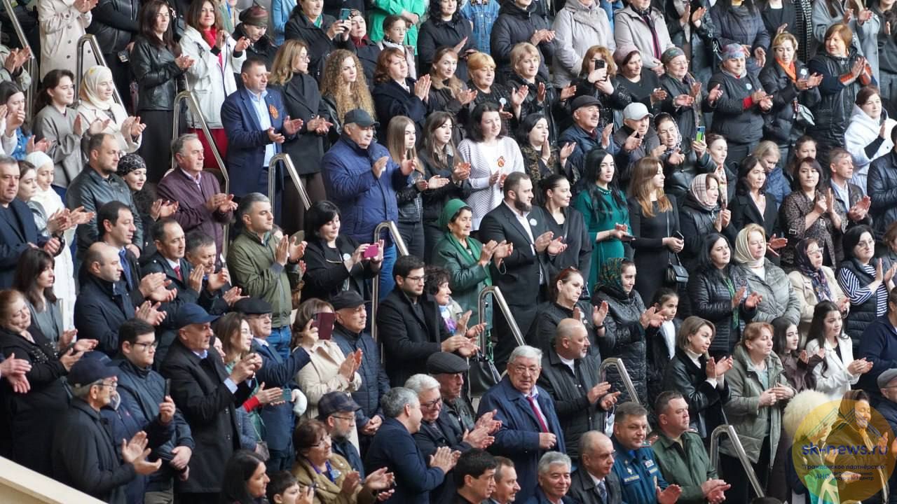 Среди артистов, выступающих с праздничной концертной программой, зрители увидели яркий танец «Минги-Тау» в исполнении государственного ансамбля танца КЧР «Эльбрус». Зал стоя приветствовал почтенного аксакала - исполнителя народных песен Биберта Джуккаева. Заслуженная артистка КЧР Марьяна Алботова подарила зрителям попурри из известных карачаевских песен.